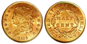 Obverse: Liberty (Classic Head type) facing left.