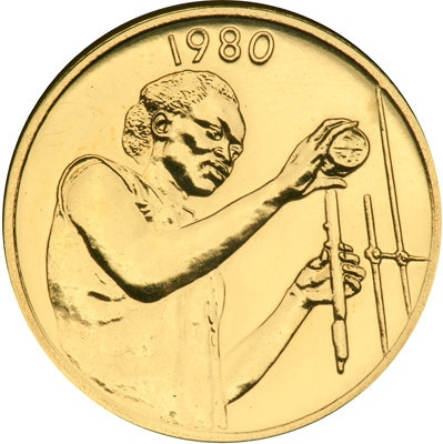 Obverse: Stylized Ashanti gold weight over map of africa.